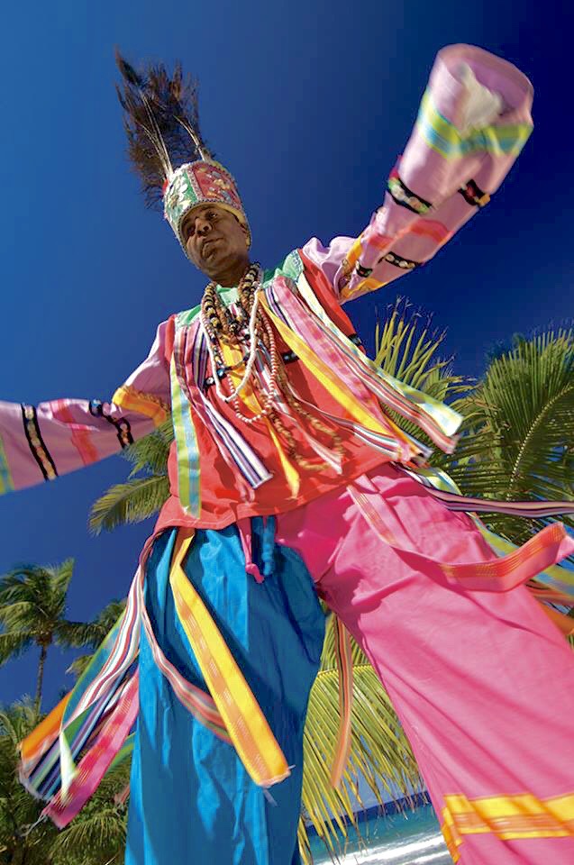 John has been dancing, performing, and teaching the art of moko jumbie since the 1970s. “I did not choose this path, it chose me,” he explains. He was initially scared of dancing on stilts high above crowds and told his cousin, John Mcleverty as much when he was asked if he wanted to learn the craft. He was a recent graduate of Lincoln University who returned home to live and contribute to his community. While at college, he had met students from across the African diaspora and learned about their cultures and traditions. “I felt deprived because I did not know enough about my own history and culture,” he remembers. “When I came back, I wanted to immerse myself in something, so eventually I said yes.” Carnival of 1975 was the first time that John joined his cousin on the stilts. “I learned that my desire to learn had to be stronger than my fear.”